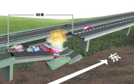 但也有人質(zhì)疑為什么現(xiàn)場(chǎng)會(huì)有一座橋墩斷裂,而不僅僅是“橋面垮塌”。橋墩斷裂的原因可能是如下兩種:1,爆炸點(diǎn)正好在墩頂,橋墩被沖擊荷載破壞;2, 爆炸點(diǎn)雖然不在墩頂,但墩頂有固定支座,沖擊荷載的作用通過連續(xù)梁作用于墩頂,將橋墩推倒。